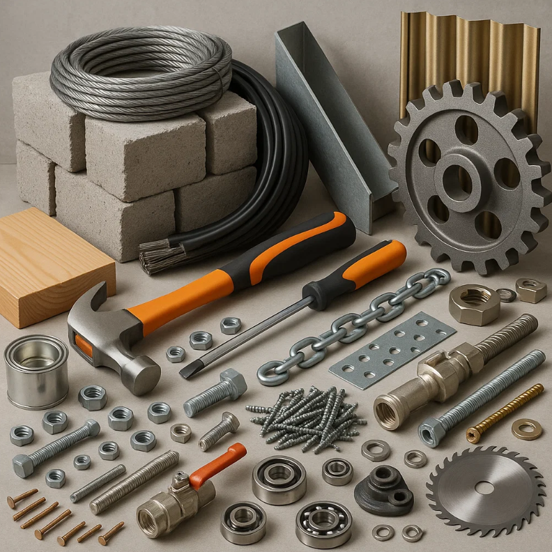 • Hardware, building materials, tools, and mechanical parts • Small production supplies and raw materials • Industrial components for workshops or light manufacturing • Maintenance or repair equipment |