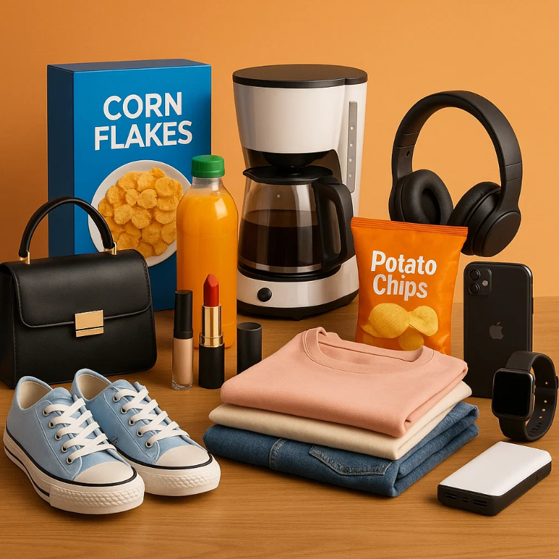 • Clothing, shoes, and cosmetics • Small appliances and packaged food • Electronic accessories and gadgets • Household and daily-use products |